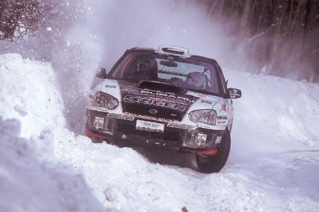 毎年1月中旬から2月下旬の最も寒い時期に北海道で行われるこのラリーは、雪と氷に覆われた路面をスタッドレスタイヤで走り、その速さを競うというもの。先頭の数台はいいが、何台ものラリー車がスタッドレスタイヤで磨いたあとの路面は、極端に滑りやすく、クルマは曲がらないし、止まらない。クラッシュ、コースアウトの危険性は通常のダートや舗装路面よりも格段に高く、最も難しいラリーと言っていいかもしれない。 |