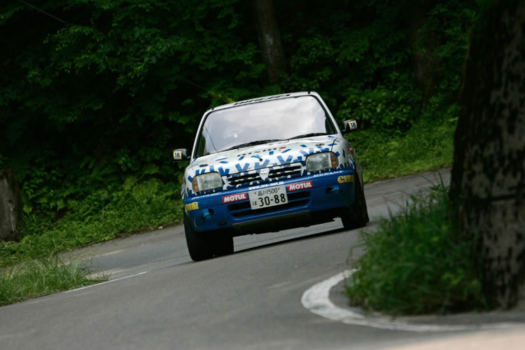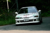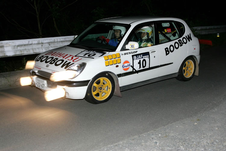 | 6月24~26日/京都府船井郡日吉町周辺 スペシャルステージ本数:9本 スペシャルステージ総距離:45.50km ラリー総距離:212.48km 路面:オールターマック 路面状況:ドライ 今年全6戦で戦われる全日本ラリー選手権2輪駆動部門は前半戦ターニングポイントの第3戦を迎えた。その舞台は京都府北部。シンフォニーラリーは今年初めて全日本選手権として開催されるが、長く近畿の地方ラリー選手権として開催されてきた背景がある。ステージはテクニカルな林道2本とかなりハイスピードは林道の計3本の林道を、それぞれ数本アタックする構成となっていた。ラリーが始まるとSS1からトラブル発生。後半でコースアウト車が出てスケジュールが遅れてしまった。こうしたケースがラリー中いくつか発生し、当初予定されていた10本のステージのうち、最終SSがキャンセルとなってしまった。 初めてのラリーということで、地元トップドライバーと全日本ラリー常連勢がどのような争いを展開するかが注目された。Bクラスでは序盤、全日本常連の榊雅広(インテグラ)とアキラ(セリカ)がテクニカルなコースでベストタイムを分け合うが、序盤最終のSS4で地元の仲鉄雄(インテグラ)がハイスピードコースでベストタイムを出し、榊、アキラ、仲、そしてここ数戦好調の横尾芳則(インテグラ)がトップ集団を形成する。 ラリー中盤以降はナイトステージ。コースを知る地元勢にとっては有利となる。SS5のハイスピードコースで仲がベスト、SS6のテクニカルコースで榊がベスト、SS7は前走者のコースアウトにより両者それまで走った者のなかで最速のタイムを与えられた。そして迎えたSS8はハイスピードコース。ここで仲が5分ほどのコースながら他を10秒引き離す快走を見せて一気にトップに躍り出る。榊は総合2番手に。ここで負けを最小限に食い止めた横尾が、3番手ながら榊に5.1秒差と迫る。そして迎えた最終SS、仲が再びベストタイムをマーク。地元の意地を見せた仲が、全日本ラリー初優勝を飾った。横尾も榊に競り勝ち、2位ながら全日本ラリー自己最上位を獲得。これで横尾は全日本トップ勢の仲間入りを果たしたといってもいいだろう。 Aクラスはめまぐるしく順位が入れ替わる展開となった。序盤トップ集団を築いたのは矢島融、山本剛(両方ともシティ)と河野健司(ヴィッツ)だった。だがまず河野がリタイア、さらにはSS6で矢島と山本が仲良くリタイアしてしまった。これでトップに立ったのが、地元の村田康介(ストーリア)。村田は弱冠24歳ながら4輪駆動部門にも参戦を始めた近畿期待の若手ドライバーだ。だがSS7でベテラン若槻幸治郎(マーチ)が村田をかわしてトップに立つ。だが最終のハイスピードコースで、地元の利が光った。村田が若槻を10秒かわして逆転で優勝。村田も仲同様全日本ラリー初優勝を手に入れた。 CクラスはSS5まで連続ベストをたたき出したベテラン大庭誠介(スターレット)の一人舞台かと思われたが、夜になると遅れだした。だが序盤のマージンが利いて、一時は10秒あったリードをコンマ6秒に縮められながらも大庭が逃げ切った。