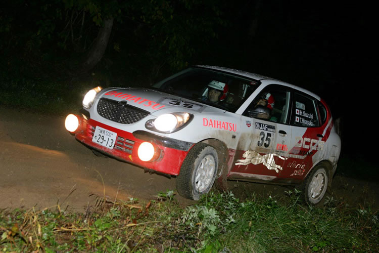 夜に入ってグッと気温が下がり、麓では霙混じりの雨がひどくなっていた。20分のサービスをはさんだSS7のコースはSS2&4の逆走となる。ゼッケン1の奴田原がアタックを開始したが、コースを上るにつれて雪が深くなり、ついには路面一面が真っ白! ライトに照らし出された雪が荒れた路面を覆い隠してしまっていた。後続車にワダチをつけて道を教える役になってしまった奴田原は、このステージではトップタイムをマークした田口から22秒遅れた5番手タイムしか出せなかった。