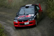 SS3、4はSS1、2と同じコース。SS3をスタートするころから雨が降り出し、小ぶりになるかと思うと霙混じりとなり、荒れた展開が予想された。SS3をベストで上がったのは奴田原。やっと調子が戻ってきた鎌田が2番手タイムで続く。SS4は奴田原が制したが、勝田がここでサスペンショントラブルからリタイアしてしまった。鎌田が奴田原についでセカンドベストをたたき出したものの奴田原の9秒遅れ。ここまでの順位を見てみるとトップは奴田原。ついで約14秒遅れて綾部が2番手につける。鎌田は奴田原から21秒遅れて3番手。4番手には昨年のこのラリーで全日本Cクラス初優勝を飾った田口幸宏ランサーがつけていた。