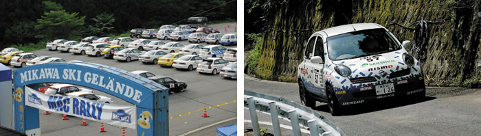 久万高原ラリーの前身は、1980年代から90年代はじめにかけて全日本ラリー選手権の重要な1戦となっていたツール・ド・四国。91年を最後にツール・ド・四国は全日本戦カレンダーから姿を消したが、2002年、同じエリアを舞台にMACラリーという名称で二駆部門シリーズの1戦として全日本に復帰した。しかし11年間の環境変化のためか、かつてグラベルステージで知られたツール・ド・四国とは異なり、MACラリーはオールターマックのスプリントラリーとなった。今年、全日本ラリー選手権の二駆四駆統合とともに久万高原ラリーと名称が再び変更されたこのイベントは、前年同様、愛媛県・美川スキー場周辺の舗装林道をその舞台として開催される。地元には古くからのファンも多く、長く待ち望んだランサーやインプレッサという最強マシンの四国初上陸がついに実現するとあって、10年ぶりに統一された全日本ラリーを熱烈に歓迎するムードが高まっているようだ。 |