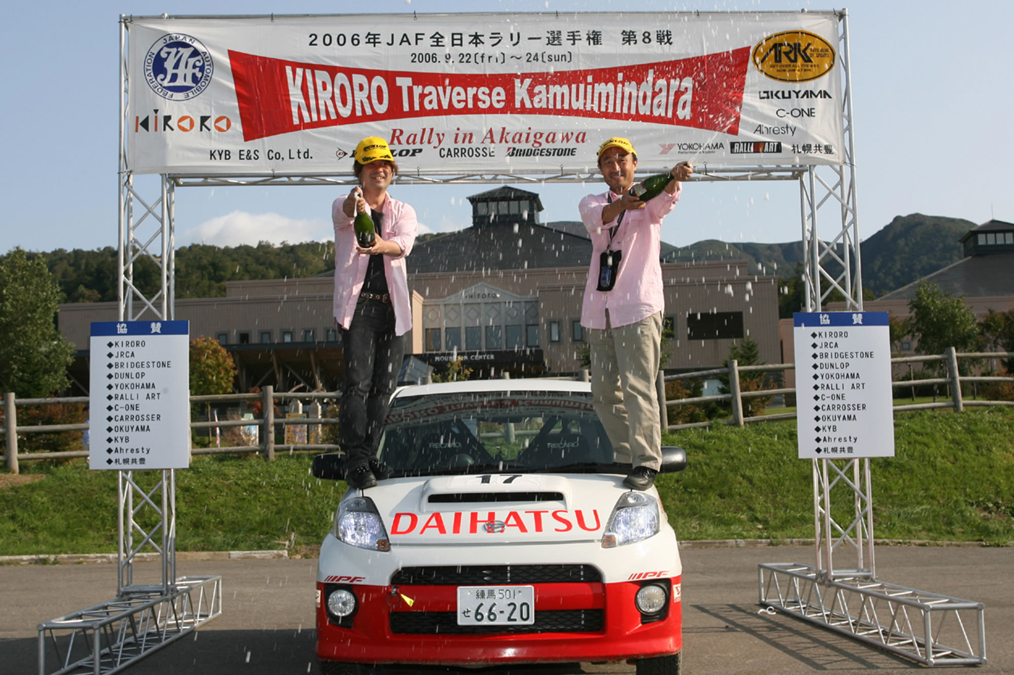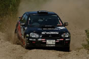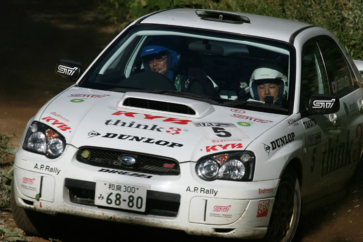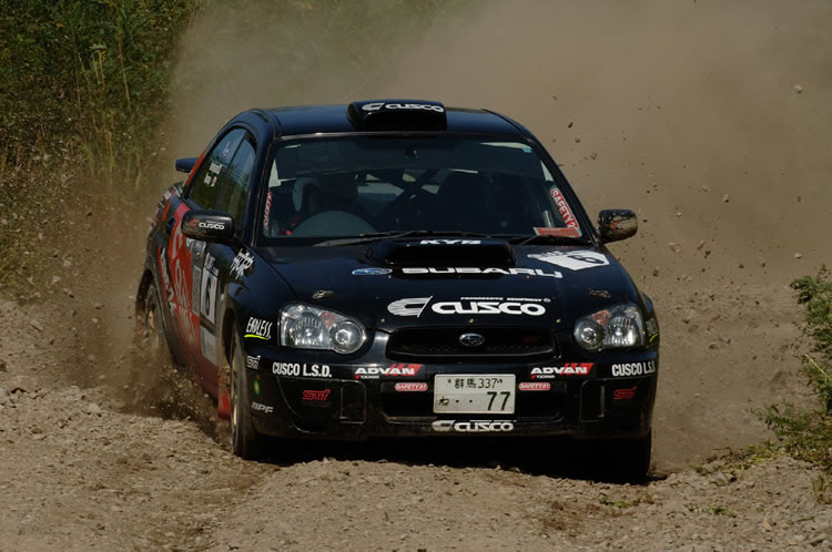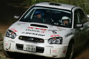 9月22~24日/北海道・赤井川村近郊 第7戦を終えて、シリーズチャンピオン争いは奴田原文雄ランサーと勝田範彦インプレッサの二人に絞られていた。そして迎えた今回の第8戦、奴田原がPWRCキプロスラリー参戦のため不参加。勝田にとってはここで勝って最終戦での戦いを有利にしておきたいところ。ところが「鬼の居ぬ間」を狙って、ライバルたちが黙ってはいない。序盤好タイムを連発したのは石田雅之ランサーだった。だがSS3でコースアウトしてしまった。この時点で北村和浩インプレッサがトップで、炭山裕矢インプレッサが2番手。一方勝田はタイヤチョイスに失敗し、SS4終了時点でトップの北村から22秒遅れの4番手となっていた。 |