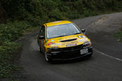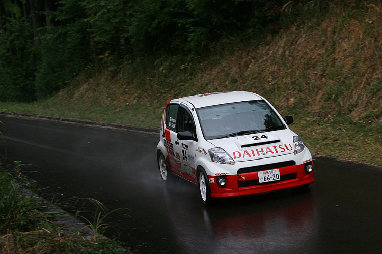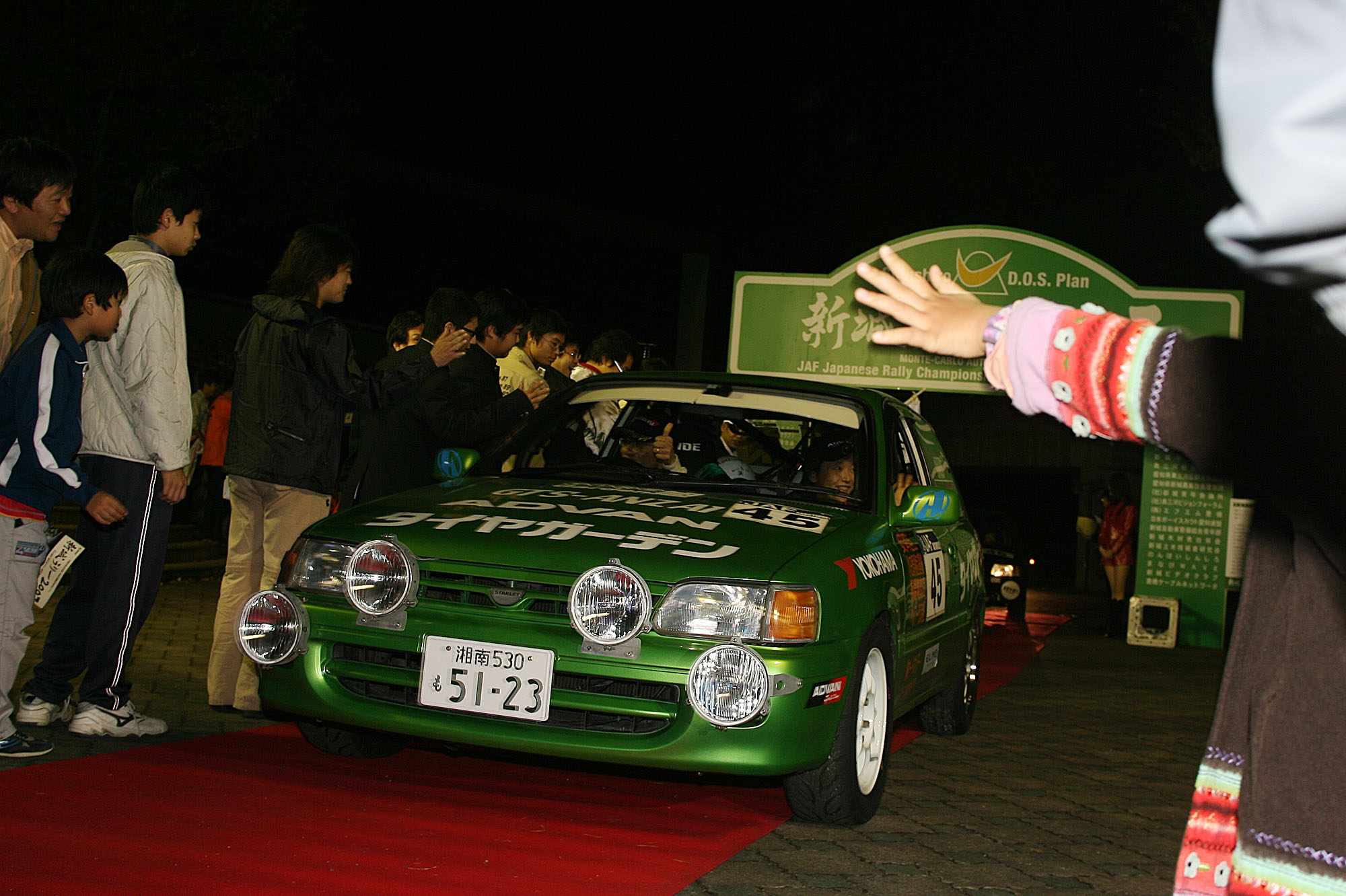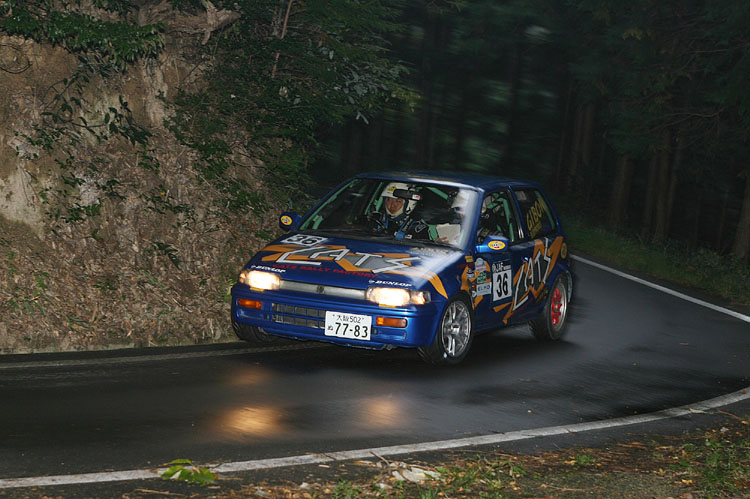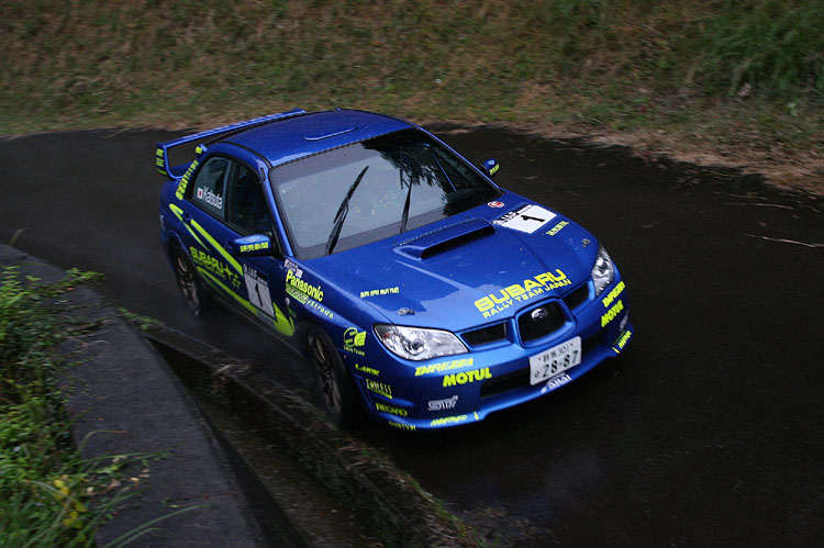 金曜日夕方に降り出した雨は、土曜日朝まで降り続いた。ウェットコンディションで始まったSS1は、ダークホースの徳尾慶太郎がステージベストをマークし、JN-2やJN-1のクルマがトップ10に4台も割り込むという異例の展開。ラリーの出走は車両のスピードと選手の実績を考慮して、まず最も速いと考えられるJN-4のトップドライバーから始まり、おおむねJN-3、JN-2、JN-1クラスの順に続く。雨があがったばかりのSS1では、先頭グループ走行時はほぼ完全にウェットだったが、JN-2やJN-1車両が走る頃にはかなり路面が乾いてグリップが良くなっていたのだろう。 SS2以降は前方出走と後方出走の路面条件の差はSS1ほどではなくなったのか、先頭出走のターマックキング勝田範彦がリードを築いていき、SS1で出遅れたJN-4クラスドライバーたちがトップグループに名を連ねてきた。依然として好調な徳尾が勝田に続き、奴田原文雄が3位、北村和浩が4位につける。 レグ1最終のSS6では、北村が立木にヒットしながらも勝田に2.1秒差に迫るセカンドベストを記録し、奴田原を0.5秒かわして3位に浮上。しかしすでにトップ勝田は2位徳尾との間に33秒ものマージンを築いており、徳尾と北村との差も17.4秒と大きく開いていた。 明けてレグ2は、天気予報どおりに朝6時ごろから再び雨。奴田原がタイヤチョイスに成功したのか、この日はSS6本中5本でベストタイムを奪う激走で、北村をあっという間に抜き去った。しかし勝田には及ばず。レグ1での大量リードが効いて、勝田は奴田原を27秒差に退け今季6度目の優勝。地元・愛知県での最終戦で、初めての全日本タイトル獲得に花を添えた。 JN-3では長岩信二、JN-2では平塚忠博、JN-1では廣瀬康宏がそれぞれクラス優勝した。 |