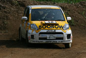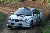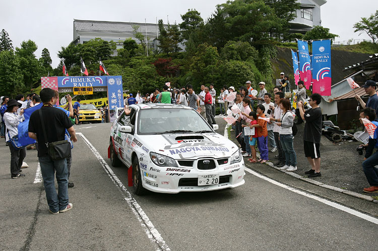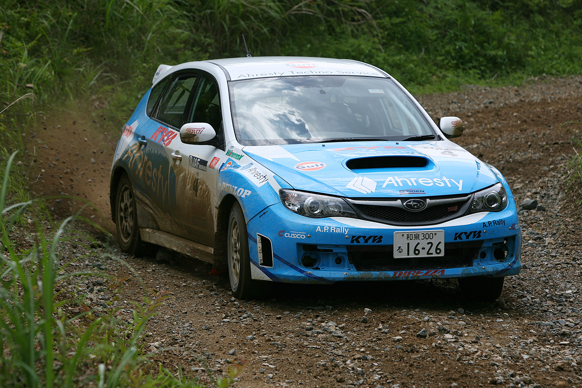 SS1はまず石田正史が先制し、勝田がその0.4秒差、田口幸宏がその3.9秒差で続く。これに対し、インプレッサGRBで初めてグラベル林道を走る北村は、田口からさらに2.6秒落ちとやや出遅れた格好だ。SS2では石田が勝田に約4秒の差をつけるぶっちぎりベストタイムでリードを広げ、北村は勝田に1.5秒差と少し持ち直した。田口はタイヤバーストのため20秒近く遅れて、トップ争いから早くも脱落した。