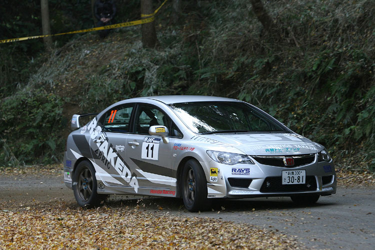 2004年の初開催から去年まで毎年雨に見舞われてきた新城ラリーだが、今年は例年より2~3週間遅れての開催となったためか、冬型の気圧配置のもと、2日間とも好天に恵まれた。しかしコース上に広がる砂利や落ち葉は参加者に厳しい試練を与え、全日本選手権出走56台のうち19台がリタイアするというサバイバルラリーとなった。