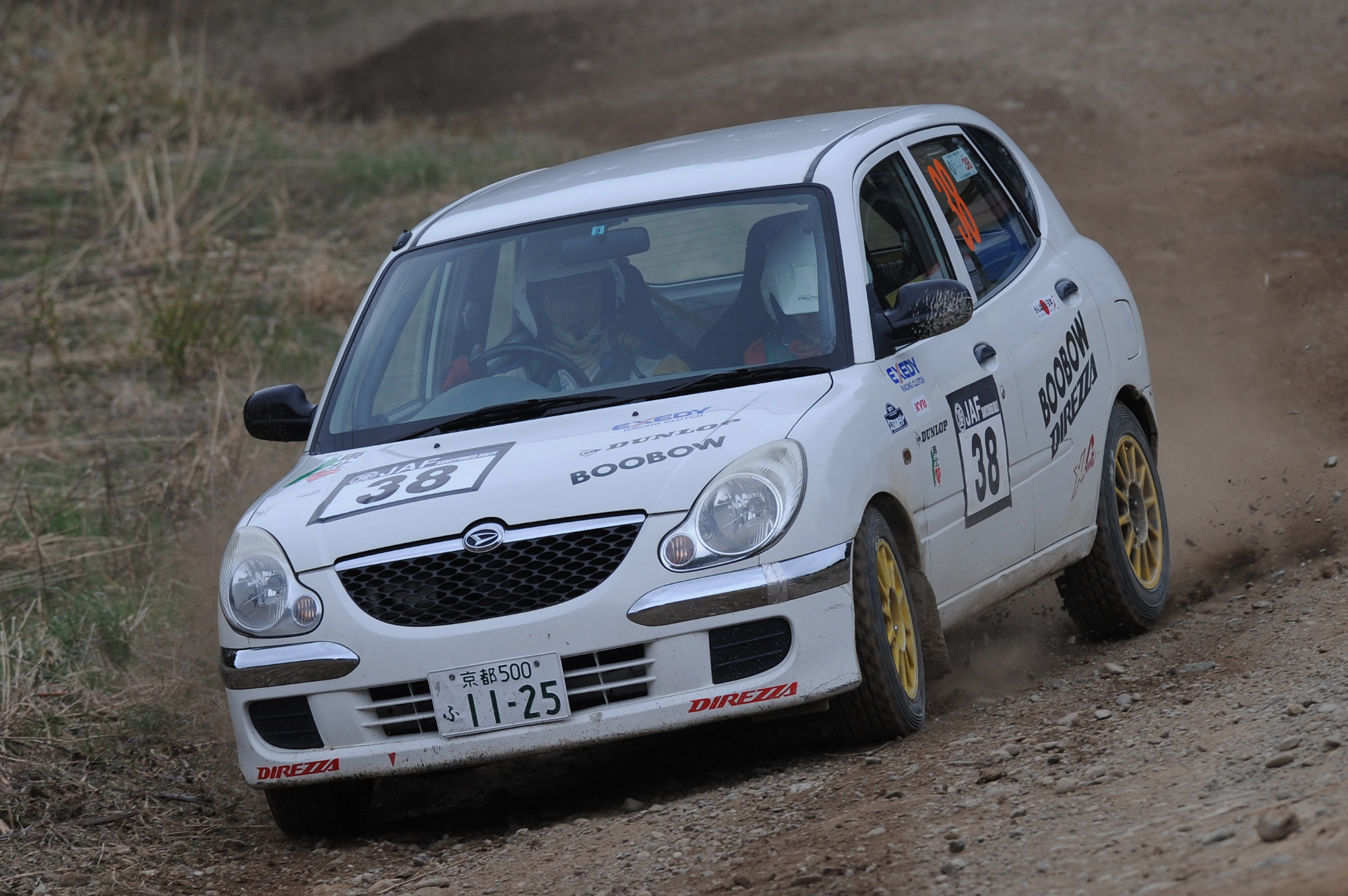 JN3クラスは、クラス唯一となる4駆のブーンX4を駆る地元の松原久がSS1を奪うが、続くSS2で駆動系を破損してしまい早々とデイ離脱。これで昨年のチャンピオン香川秀樹がトップに立ったものの、SS5でフロントタイヤがバーストし、順位を一気にクラス7番手にまで下げるという波乱の展開となった。