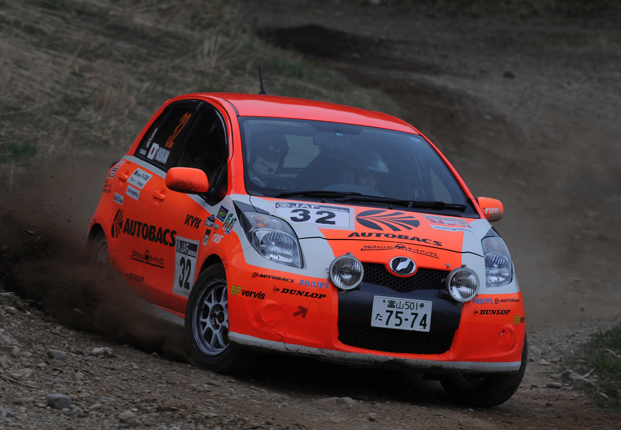 実質的には3台のストーリアの争いとなったJN1クラスは、「勝ち負けというよりも、自分自身がラリーを楽しむためにせめて年に1回は全日本を走ろうという気持ちで出場しました。ラリー界にも忘れられないように(笑)。だから、クルマを壊さずに気持ちよく走りきろうと思ってます」という村田康介が快走。全SSでベストタイムを奪い、クラス優勝を果たした。また、全日本初出場となる山口貴利が集中力を最後まで切らさずに完走、2位に入賞した。