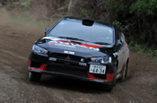 今回もその勝田が山神下を快走。前日まで降り続いた雨の影響が残り、スリッピーな路面となったこのSSで、今季初登場となる石田正史CZ4Aランサーに13.6秒もの大差をつけるベストタイムをマークする。さらにSS2・長迫1(2.98km)でも勝田が連続ベストを叩きだし、序盤のSS2本で早くも2番手の石田に対し15.9秒、3番手の奴田原に対して16.2秒もの大量マージンを築き上げた。