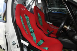 安全ベルト純正3点ベルトに加え、4点式以上のワンタッチ式フルハーネスセーフティベルト取り付けることが義務つけられています。過酷な走りをするためしっかりとドライバーとコドライバーをシートに固定する必要があるラリーでは、純正の3点シートベルトはとてもしっかりと体をホールドしてくれないので、実際には純正の3点シートベルトだけで参加する人はいないでしょう。 |
